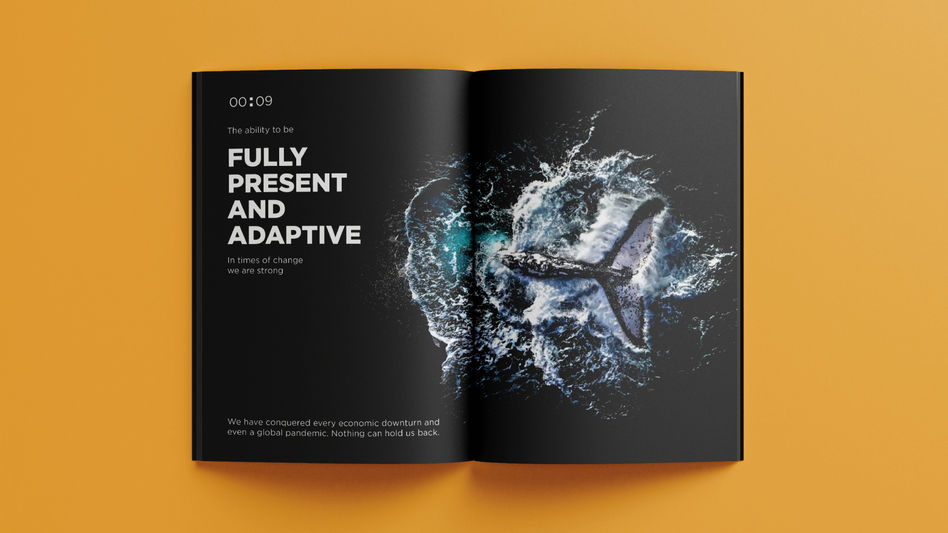 “Leap in Time” captures AAIB’s bold leap into a future shaped by digital transformation while staying anchored in its legacy of strength and stability. The design balances dynamic, futuristic visuals with structured layouts to convey progress, resilience, and disciplined action, as emphasized by themes like Accelerating Transformation and Discovering Limits and Blazing Through Them. Bold typography and a modern color palette symbolize AAIB’s strength and innovation, while elements of motion and connectivity represent the bank’s strategic embrace of digital technology and customer-centric solutions. This concept highlights AAIB’s forward momentum while staying rooted in its core values.